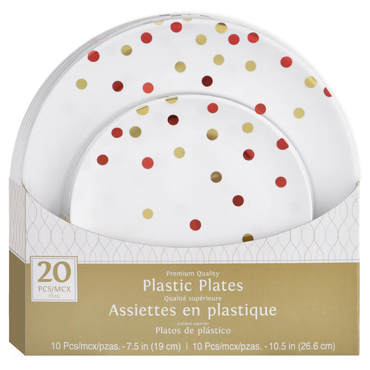Sturdy Plastic 2 Sized Plates - Party's Solid Colors Dotted