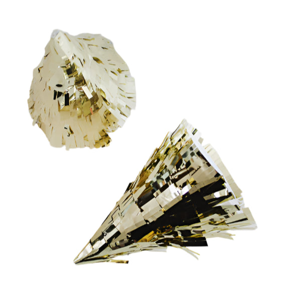 Add a fun element to your party by wearing these Mini Gold Foil Fringe Party Hats! The golden hats feature fringes on the bottom that will look perfect at your New Year's party, birthday events, or any occasion. The pack includes four lightweight cone-shaped hats that are suitable for ages three and above.